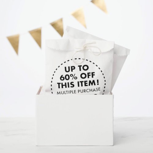 Get up to a huge 60% off your custom favor bags with multiple purchase discounts + big savings on Daily Deals for a purchase of just a single set of 50 custom favour bags.